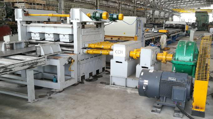 B: Tout d'abord, il y a une unité de découpe à double bord, il est pour couper le bord de grattage de la plaque d'acier laminée à chaud pour obtenir la largeur exacte pour le poteau de lumière,