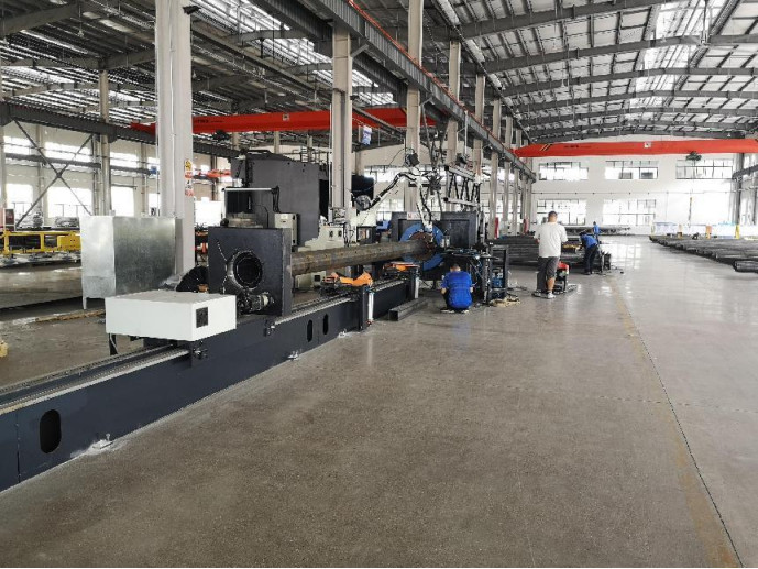 Le système de soudure sont appliqués pour la production de soudure d'embase de poteau léger. Par communication en temps réel entre le robot et la puissance de soudure, selon la position de soudure différente de gagner la couture de soudure de bonne qualité,