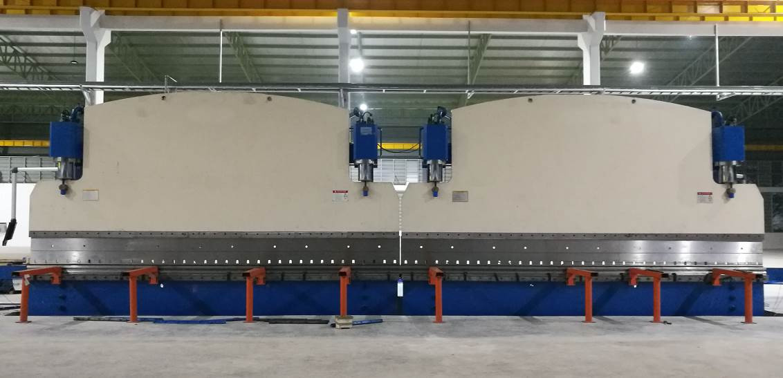 Si vous avez besoin de deux unités travaillant ensemble, il suffit de faire pivoter l'interrupteur à la position de synchronisation sur le panneau de commande de l'unité principale.Les deux signaux de position de l'unité seront envoyés au système de commande CNC (système Delem), et le signal de sortie du système CNC sera envoyé à la vanne proportionnelle et à la vanne de pré-remplissage.la vitesse de pression et la vitesse de retour pour maintenir les deux unités de synchronisation avec une grande précision